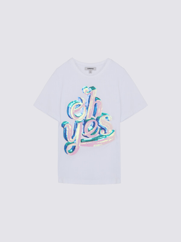 Хлопковая футболка с рисунком из пайеток. Изготовлена из дышащей ткани, она обеспечит комфорт в течение всего дня. Свободный силуэт и широкие рукава позволяют чувствовать себя свободно и уверенно. Эта вещь идеально подходит как для праздника, так и на каждый день.