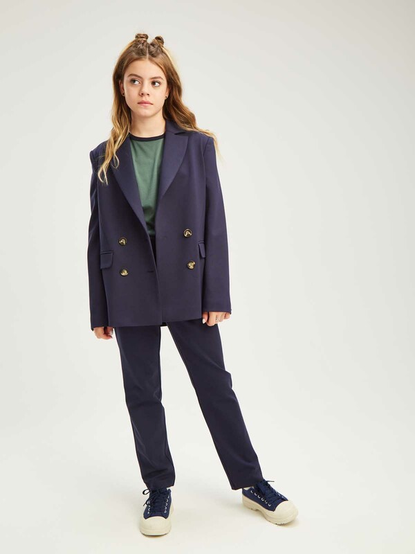 Мы предусмотрели два вместительных кармана, куда может поместиться смартфон и пропуск в школу. Отложной воротник и лацканы добавляют образу фактурности, а прямой крой не сковывает движения.