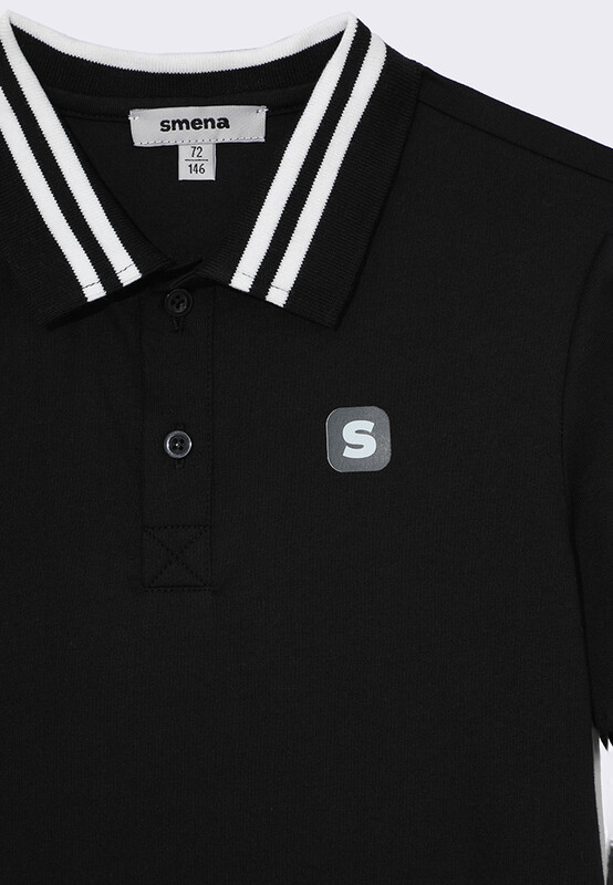 Трикотажное поло с короткими рукавами. Мягкий фактурный трикотаж из 100% хлопка. Классический прямой крой, отложной воротник с декоративными контрастными полосами, планка на двух пуговицах. В верхней левой части груди принт буквы S. На спине контрастный принт TRUTH (с англ. «истина») и NO TIME FOR FAKE PEOPLE (с англ. «Не трать время и энергию на бесполезных людей»). Размерный ряд 128 – 176 см.