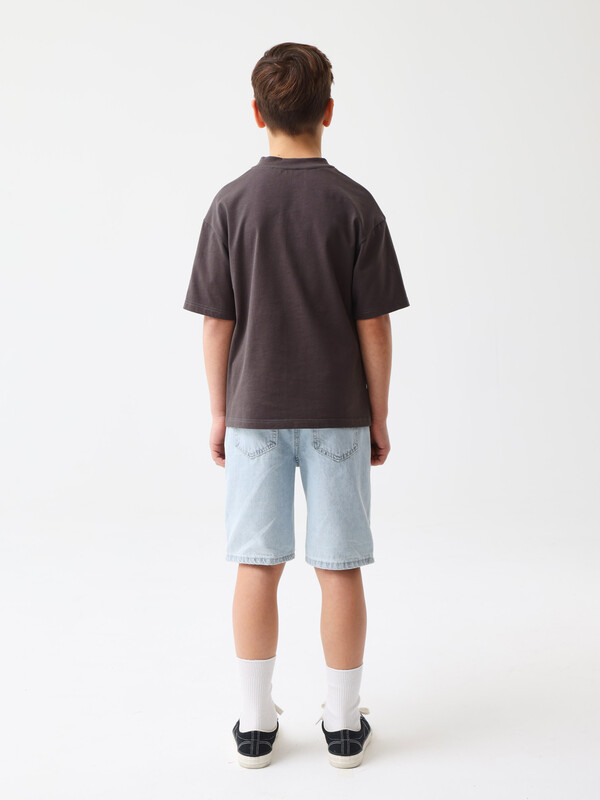 Джинсовые шорты прямого кроя. Плотный качественный деним из 100% хлопка. Расслабленный прямой крой со средней посадкой талии. Классическая застежка на молнию и пуговицу, шлевки для ремня, пять карманов. Представлены в 2 цветах – светло-голубой и табачный. На модели представлен размер 146. Размерный ряд 128 – 176 см.