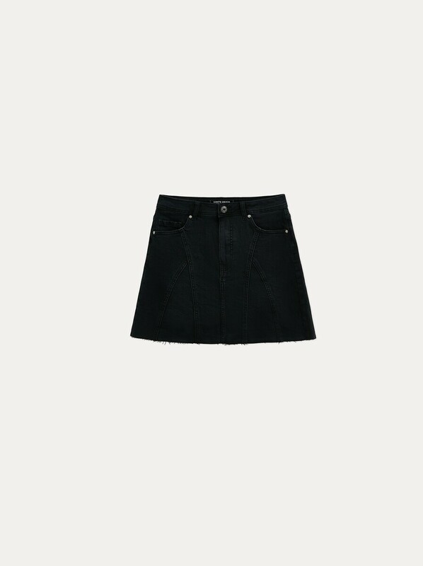 Чёрная джинсовая юбка-mini с декоративными рельефными швами идеально подойдёт для ваших лаконичных и смелых стилизаций, будь то повседневный выход или вечернее мероприятие.