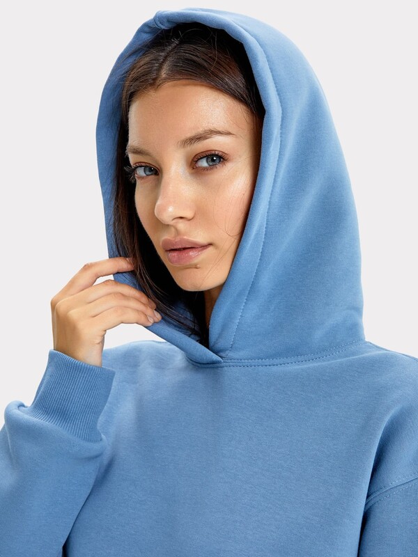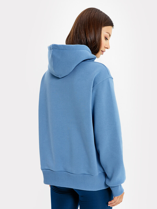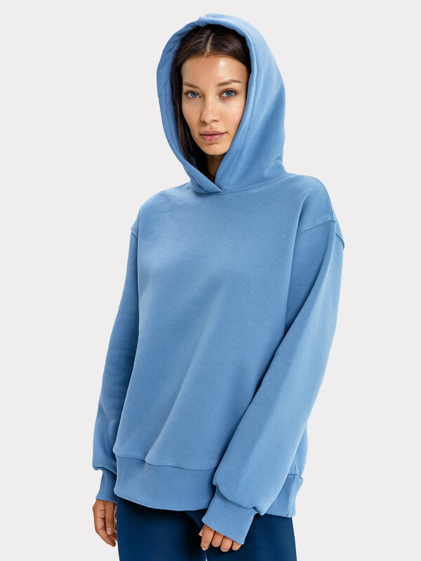 Анорак женскй изготовлен из трикотажного полотна футер. Анорак свободного силуэта. Горловина округлой формы, в горловину втачан капюшон. Капюшон с центральным швом. Плечо спущено, пройма углублена. Рукав втачной, длинный. По низу рукава широкая отрезная манжета из рибаны. По низу жакета широкий отрезной пояс из рибаны.
