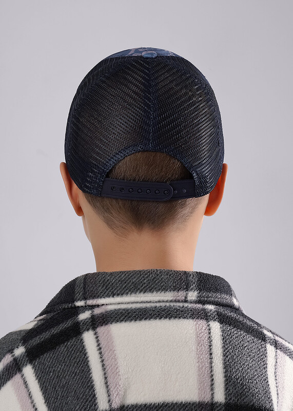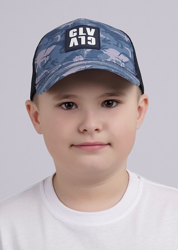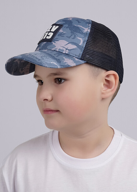 Детская бейсболка. Модель сшита из 6-ти клиньев, вставка из сетки в затылочной части обеспечивает вентиляцию. Размер бейсболки 52-54, регулируется при помощи пластиковой застежки. Декорирована игровым принтом ""динозавры"" и силиконовой нашивкой-логотип.