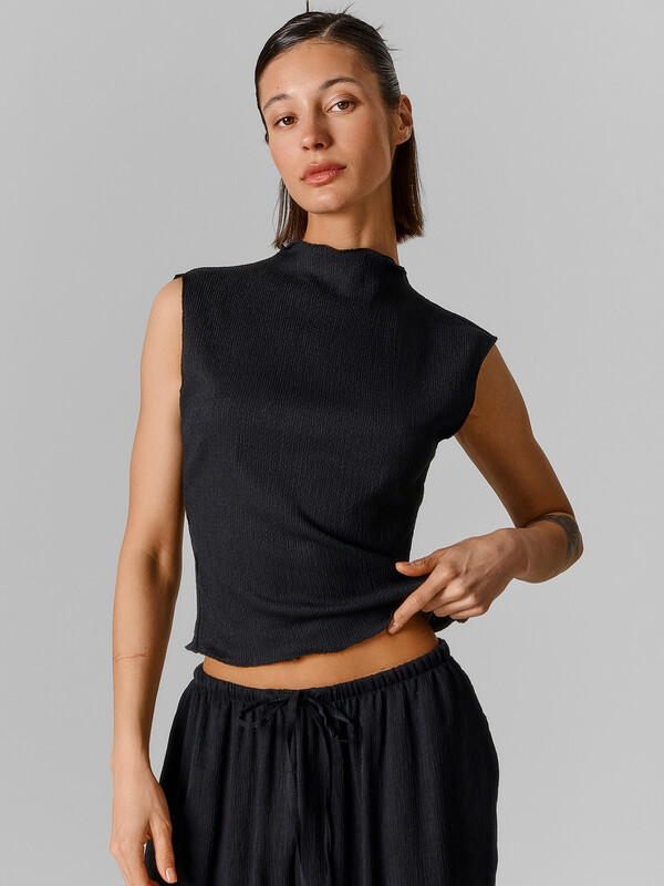 Этот женский топ — элегантное сочетание комфорта и стильного дизайна. Прилегающий силуэт подчеркивает фигуру, создавая изящный и женственный образ. Горловина со стойкой добавляет модели выразительности и делает её идеальной для стильных сочетаний — будь то классические брюки, юбка или джинсы. Топ выполнен из фактурного материала с эластичными искусственными волокнами, что обеспечивает комфортную посадку, свободу движений и легкость в носке. Ткань приятно прилегает к коже, хорошо держит форму и создает современный, аккуратный вид. Эта модель станет отличным дополнением к гардеробу, легко комбинируя с повседневными и вечерними луками. Идеальный вариант для тех, кто ценит стиль, удобство и качественные материалы!