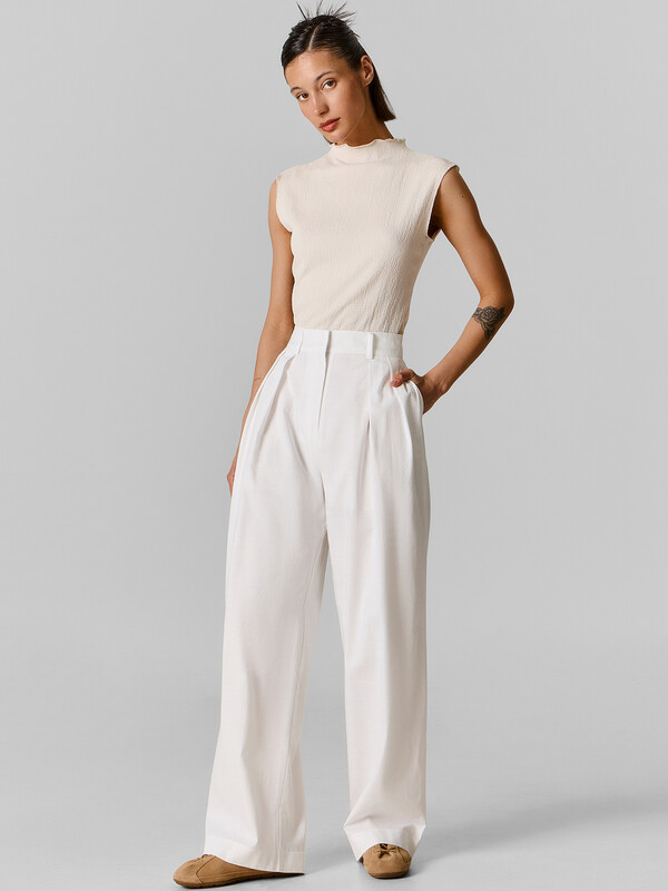 Этот женский топ — элегантное сочетание комфорта и стильного дизайна. Прилегающий силуэт подчеркивает фигуру, создавая изящный и женственный образ. Горловина со стойкой добавляет модели выразительности и делает её идеальной для стильных сочетаний — будь то классические брюки, юбка или джинсы. Топ выполнен из фактурного материала с эластичными искусственными волокнами, что обеспечивает комфортную посадку, свободу движений и легкость в носке. Ткань приятно прилегает к коже, хорошо держит форму и создает современный, аккуратный вид. Эта модель станет отличным дополнением к гардеробу, легко комбинируя с повседневными и вечерними луками. Идеальный вариант для тех, кто ценит стиль, удобство и качественные материалы!