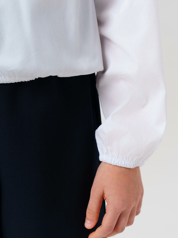 Блузка выполнена из приятного текстиля с высоким содержанием хлопка — мягкий, дышащий и гипоаллергенный материал обеспечит комфорт даже самой активной ученице.