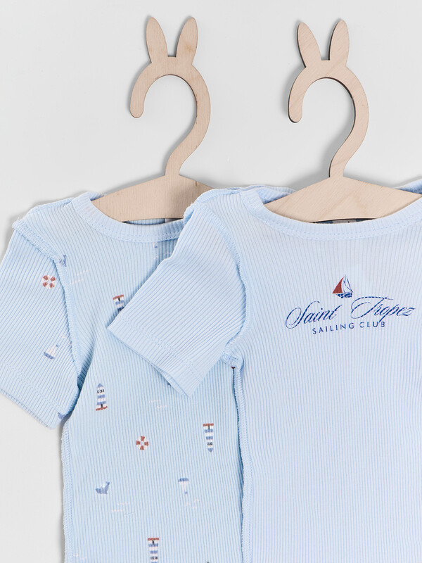 Рукава короткие, втачные, одношовные. Низ рукавов обработан на 2х игольной плоскошовной машине швом в подгибку. Нижние срезы переда и спинки окантованы бейкой в три сложения. Застежка на три книпера 9мм.