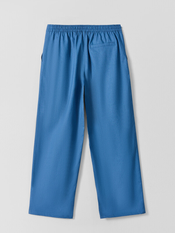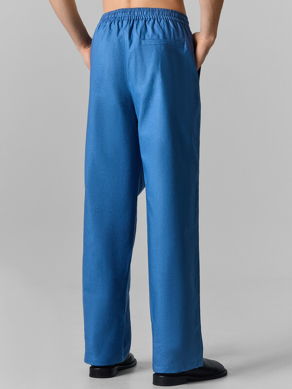 На задней половинке брюк справа прорезной карман-обманка с листочкой.