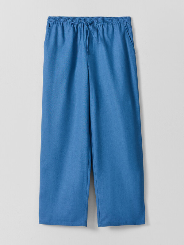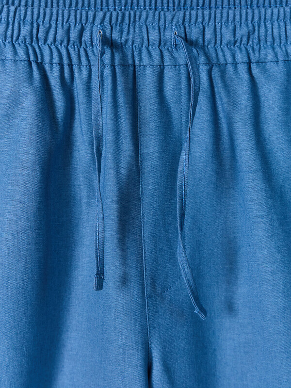 Пояс отрезной с эластичной тесьмой внутри. На поясе пробиты петли и втянут шнур с застроченными концами.