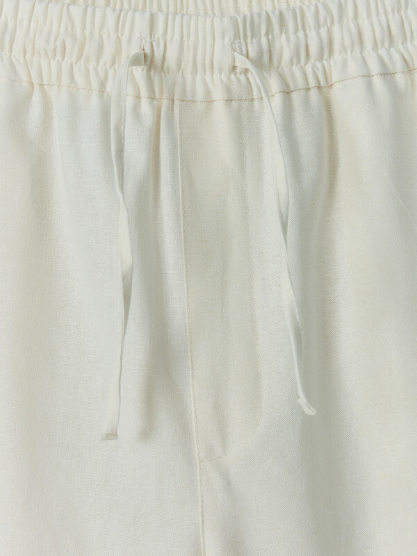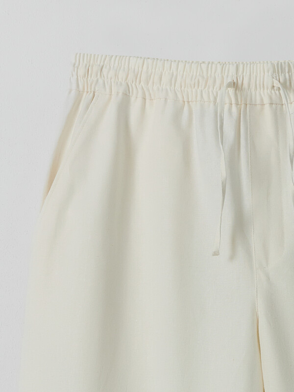 Пояс отрезной с эластичной тесьмой внутри. На поясе пробиты петли и втянут шнур с застроченными концами.
