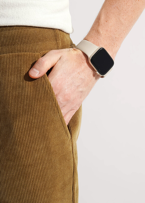 Прямые мужские зауженные брюки из трикотажного полотна вельвета, с регулируемой талией на резинке и шнуре. Функциональности модели придают боковые карманы. Брюки эргономичные и удобные.