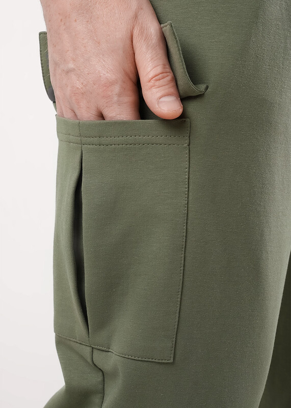 Мужские брюки-карго из футера с боковыми карманами. Пояс регулируется шнуром. Подойдет для повседневного использования в режиме большого города.