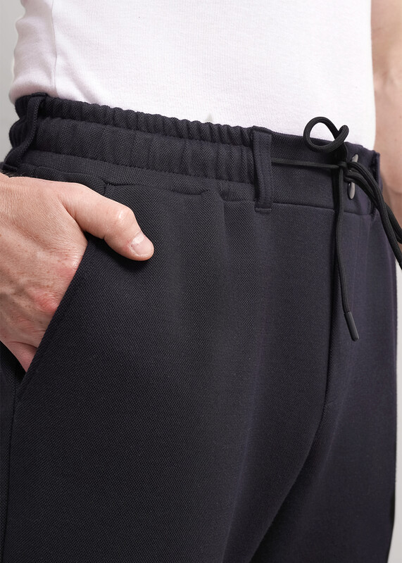 Прямые мужские зауженные брюки из фактурного трикотажного полотна, с регулируемой талией на резинке и шнуре. Функциональности модели придают боковые карманы. Идеально подойдут для учебы и работы.