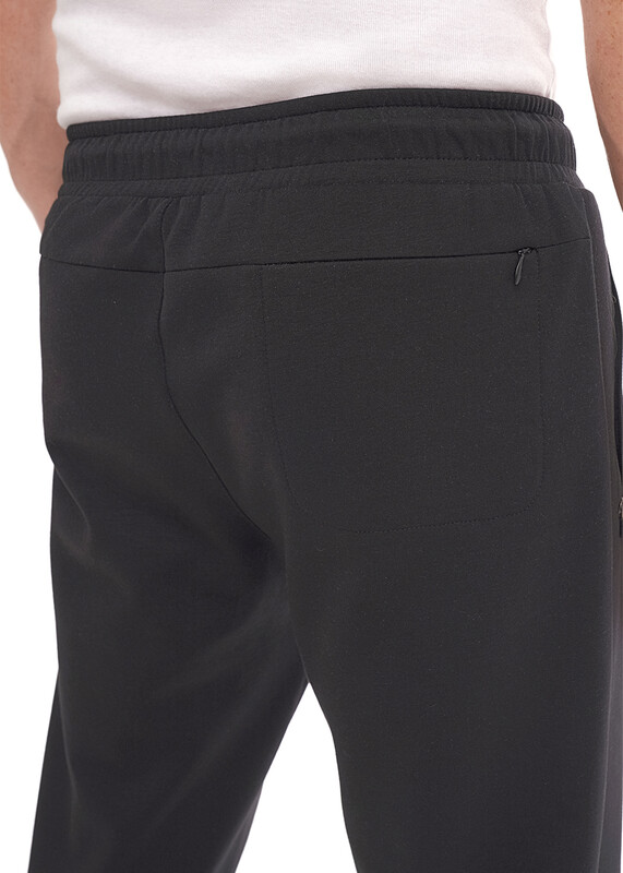 Прямые мужские зауженные брюки из трикотажного полотна с регулируемой талией. Функциональность модели придают боковые карманы, а интересным акцентом в изделии является фирменная фурнитура и дизайнерский принт. Брюки эргономичные и удобные.