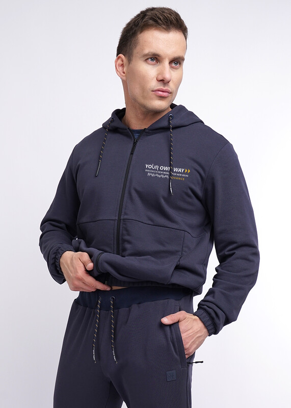 Мужские брюки из футера на эластичном поясе с пестрым шнуром и манжетах. Для функциональности предусмотрены боковые карманы на молнии. Спереди косые резы в области колена, а так же силиконовая нашивка и шрифтовой принт. Подойдут для активного отдыха.