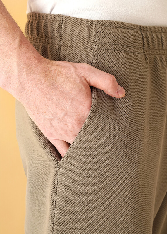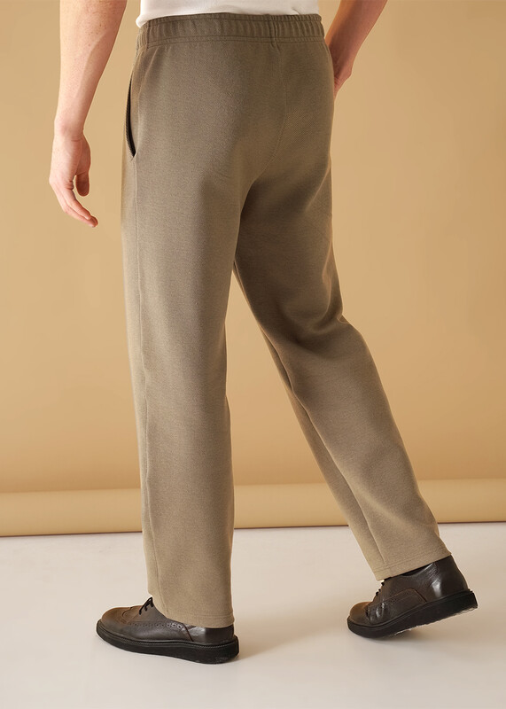 Прямые мужские зауженные брюки из трикотажного фактурного полотна. На эластичном поясе с регулируемой шнуровкой. Функциональность модели придают боковые карманы. Брюки эргономичные и удобные.