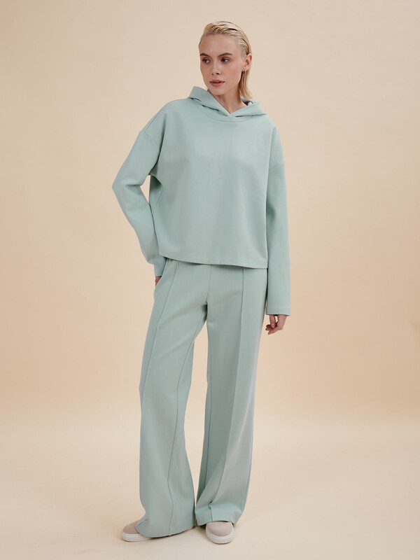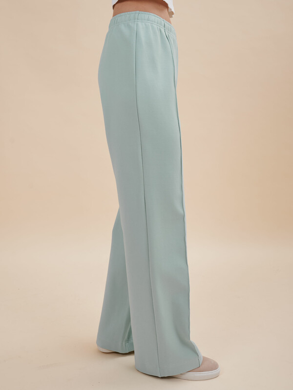 Стильные брюки женские со стрелками по переду. Актуальная модель — брюки плотно садятся по бёдрам, а от бедра – небольшой клёш. Комфортная модель подходит для разных типов фигуры, не сковывает движений. Вертикальные строчки по переду визуально вытягивают силуэт и стройнят. Брюки лаконичного дизайна, без застёжки и карманов. В поясе мягкая и широкая резинка — не давит и не перекручивается. Брюки однотонные, без принта. За ними просто ухаживать. В составе ткани преобладает высококачественный хлопок — штаны мягкие и воздухопроницаемые. Эластан помогает изделию сохранять первозданную форму в течение долгого времени. Женские трикотажные брюки представлены в следующих актуальных цветах: чёрном, голубом, синем, зелёном, белом. Размерная линейка: XS (42); S (44); M (46); L (48); XL (50). Брюки подходят женщинам, девушкам, девочкам-подросткам. Их можно носить на работу, учёбу, они идеальны для отдыха, прогулок, а также как домашние брюки. Подходят для лета и демисезона (осень и весна). Женские брюки на резинке легко комбинировать с разнообразными джемперами, свитерами, футболками. Женские летние брюки — это отличный подарок сестре, маме или подруге на любой праздник. Выбирайте нужный размер по таблице размеров на фото. Цвет товара на экране вашего устройства может отличаться от цвета изделия вживую.