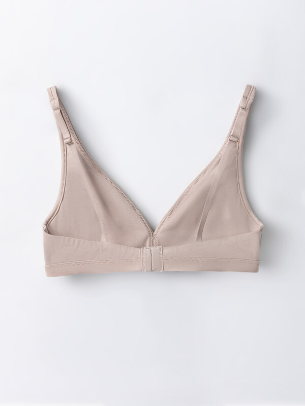 Комфортный бюстгальтер с мягкими чашками без косточек. Верхний срез обработан жилкой. Нижняя деталь пояса – с эластичной тесьмой внутри. Длина бретелей может быть отрегулирована. Бюстье практически не ощущается на теле. Рекомендуем!