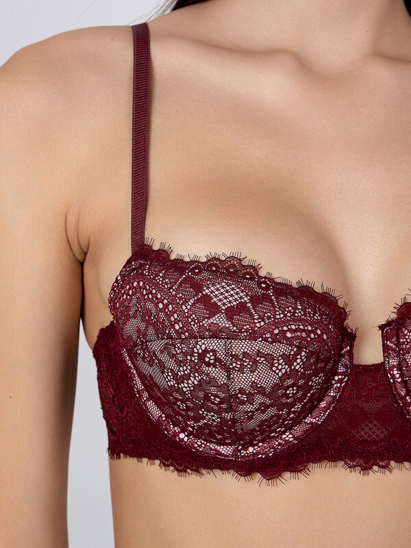 Бюстгальтер с мягкой чашкой из эластичного кружева. Каркас 20 тип. Чашка с тройным членением, на подкладке из дубляжа.