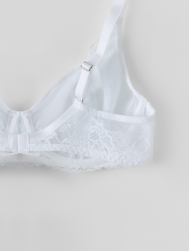 Бюстгальтер макси из эластичного кружева, каркас 47 тип, двойное диагональное членение. Чашки из кружева на подкладке из сетки эластичной, с вытачкой . Верхний срез чашки обтачан подкладкой с эластичной тесьмой 6 мм внутри (Wt4-6, девсел 13460W).