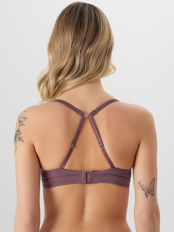 Бюстгальтер женский изготовлен из трикотажного кулирного полотна, с твердыми формоваными чашками, без каркасов.