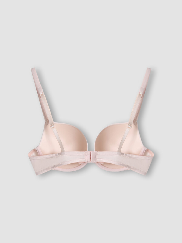 Бюстгальтер с жесткими формованными чашками с эффектом «пуш-ап (АС-50.18М), на каркасах тип 2, из микрофибры. Деталь чашки с подформовкой, обтачная по верхнему и боковому срезам. Ластовица на подкладке из монокапрона. По верхнему и нижнему срезам бочков настрочена эл тесьма 10 мм (жесткая б/зуба WTWE1-10, Артекс E7185) в 2 приема. Надставки бретелй выполнены из микрофибры с эл тесьмой 10 мм внутри (бретель SWE3-10, Артекс Е0001). Бретель (бретель SWE3-10, Артекс Е0001) с регулировкой по длине. Кольца-регуляторы пластик 10 мм (металл по заданию). Застежка крючки-петли 28 мм.
