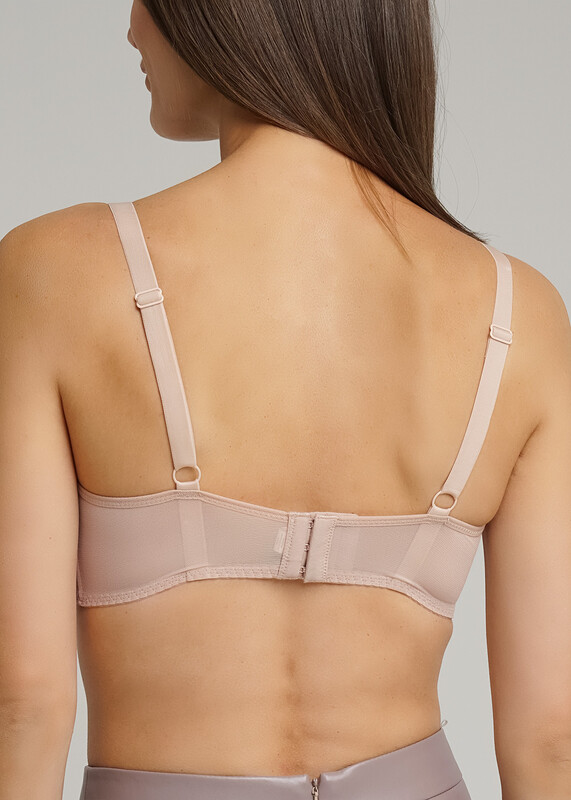 Бюстальтер из эластичного сетчатого полотна. Обладает моделирующим эффектом. Формованные мягкие чашки на каркасах выполнены из многослойного, ""дышащего"", сохраняющего форму материала с внутренним слоем из монофила.Центральная деталь декорирована атласным бантом. Бретели эластичные, не съемные. Ширина бретели варьируется от размера (70С, 75С, 80В - ширина бретели 1,2 см, остальные размеры 1,5 см.)