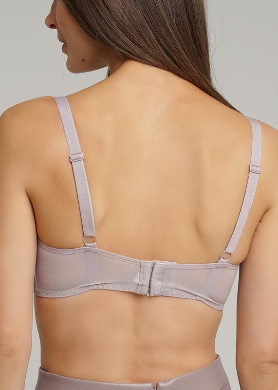 Бюстальтер из эластичного сетчатого полотна. Обладает моделирующим эффектом. Формованные мягкие чашки на каркасах выполнены из многослойного, ""дышащего"", сохраняющего форму материала с внутренним слоем из монофила.Центральная деталь декорирована атласным бантом. Бретели эластичные, не съемные. Ширина бретели варьируется от размера (70С, 75С, 80В - ширина бретели 1,2 см, остальные размеры 1,5 см.)
