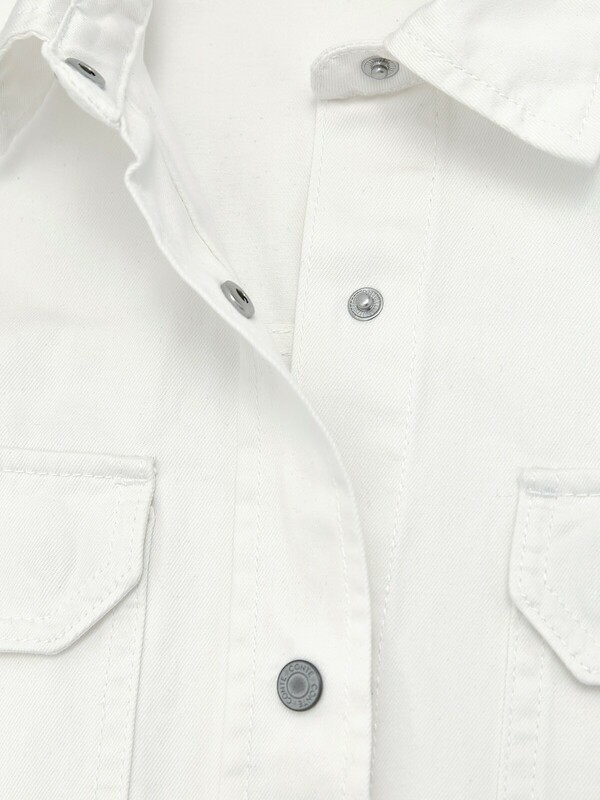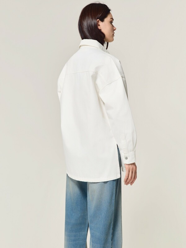 Удлинённая джинсовая ветровка со спущенной линией плеч поможет создать непринуждённый стильный образ. Винтажная фурнитура подчеркнёт изысканность белого цвета, а объёмный силуэт обеспечит максимальный комфорт при носке.
