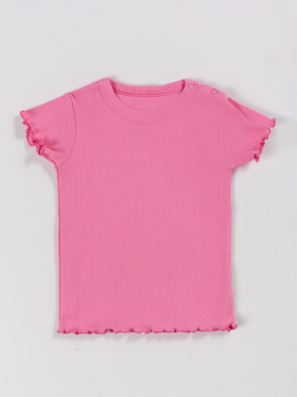 Джемпер прилегающего силуэта с короткими рукавами, выполнен из рибаны . Рукава втачные, низ изделия обработан на микрооверлоке. Горловина круглой формы с притачной обтачкой . В плечевом шве застежка на книпперы 9мм.