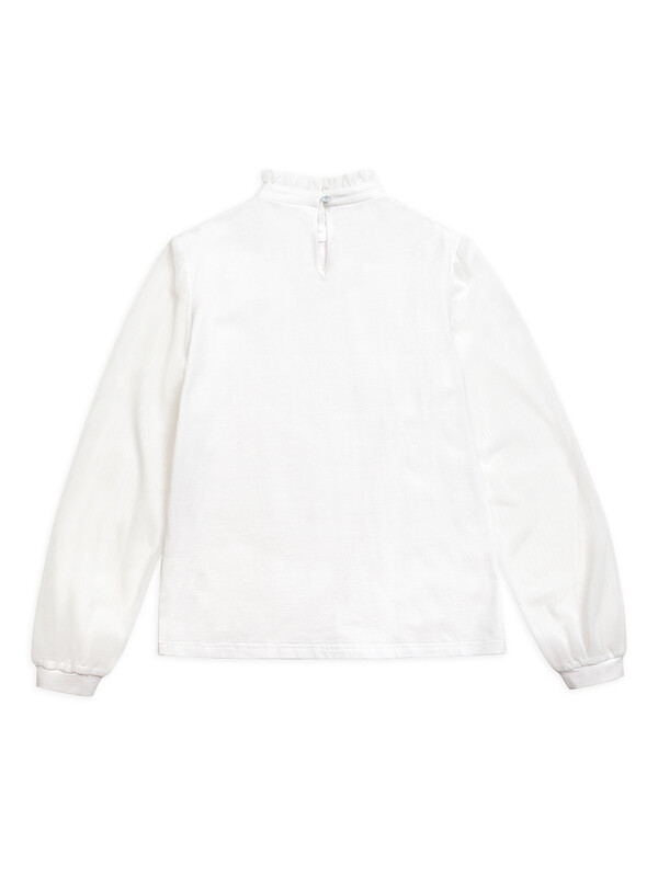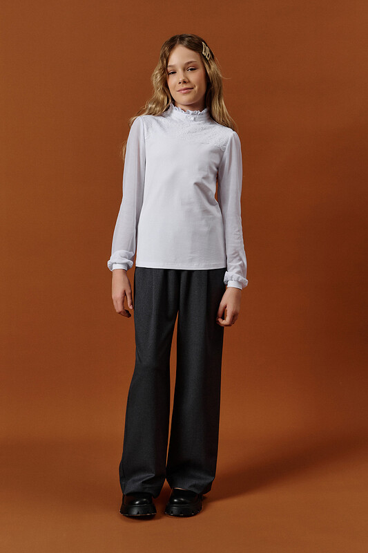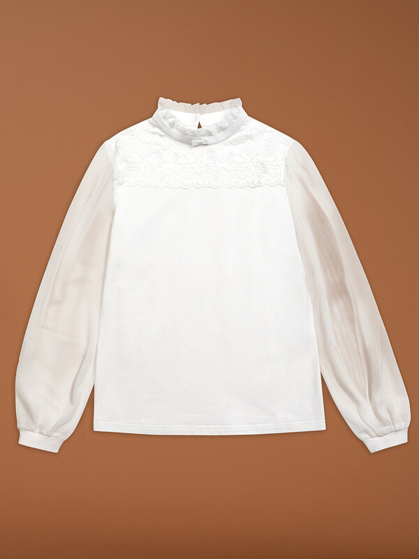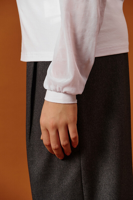 Лёгкий рукав из мягкой сетки — выглядит воздушно, смотрится празднично, а главное — не колется и не мешает в движении. Идеальное сочетание моды и комфорта для школы.