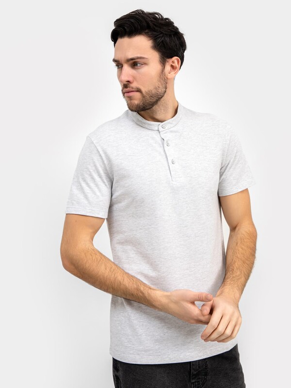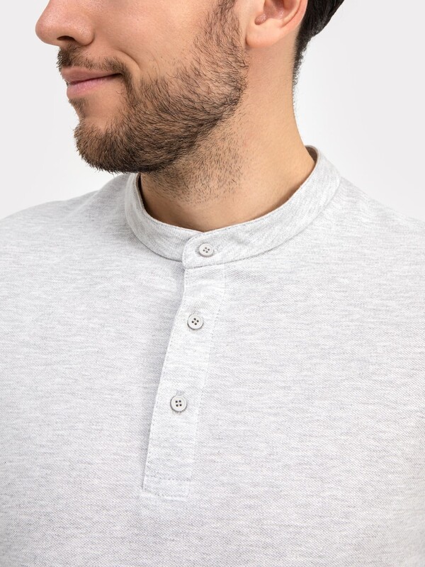 Стильная футболка поло с оригинальным воротником-стойкой и удобной застежкой на 3 пуговицы. Благодаря лаконичному дизайну, прямому силуэту и комфортной длине до середины бедер она наверняка станет любимой в гардеробе, ведь отлично подходит практически ко всему.