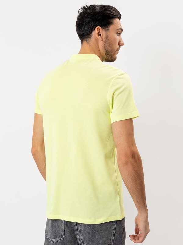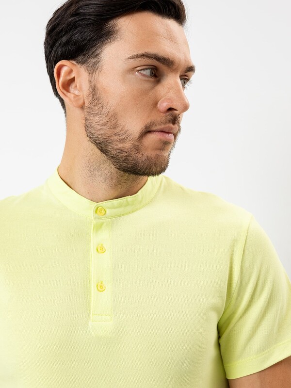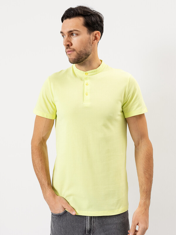 Стильная футболка поло с оригинальным воротником-стойкой и удобной застежкой на 3 пуговицы. Благодаря лаконичному дизайну, прямому силуэту и комфортной длине до середины бедер она наверняка станет любимой в гардеробе, ведь отлично подходит практически ко всему.