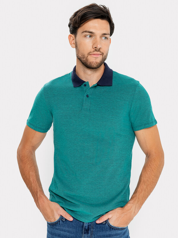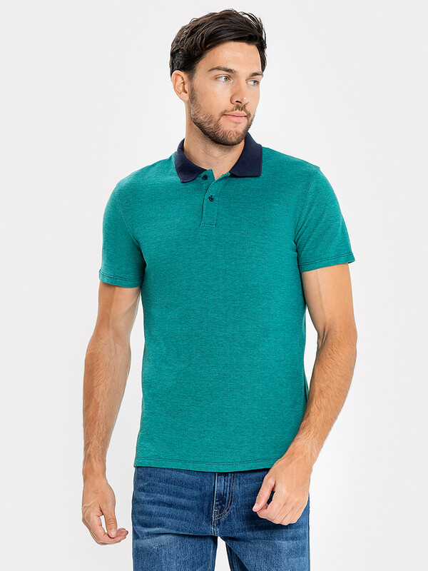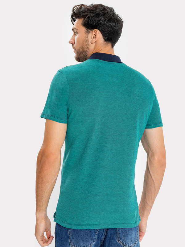 Джемпер мужской «поло» прилегающего силуэта из трикотажного полотна пике. Горловина круглой формы со стояче-отложным воротником из довяза. Центральная застежка планка на пуговицы. Шов горловины спинки обработан хб тесьмой. Рукав втачной, короткий. В боковых швах обработаны разрезы.