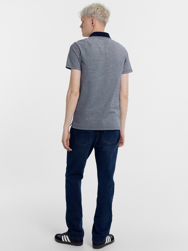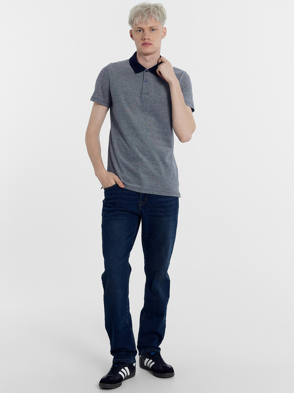 Джемпер мужской «поло» прилегающего силуэта из трикотажного полотна пике. Горловина круглой формы со стояче-отложным воротником из довяза. Центральная застежка планка на пуговицы. Шов горловины спинки обработан хб тесьмой. Рукав втачной, короткий. В боковых швах обработаны разрезы.
