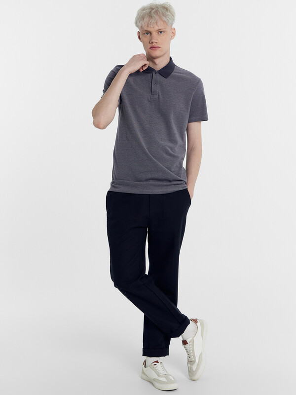 Джемпер мужской «поло» прилегающего силуэта из трикотажного полотна пике. Горловина круглой формы со стояче-отложным воротником из довяза. Центральная застежка планка на пуговицы. Шов горловины спинки обработан хб тесьмой. Рукав втачной, короткий. В боковых швах обработаны разрезы.