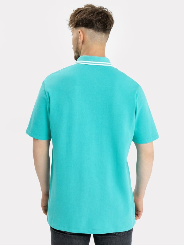 Перед с застежкой "поло". Верхняя планка цельнокроеная. Застежка на 2 петли и пуговицы.