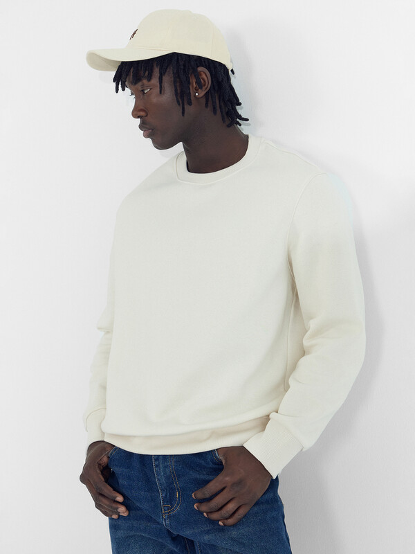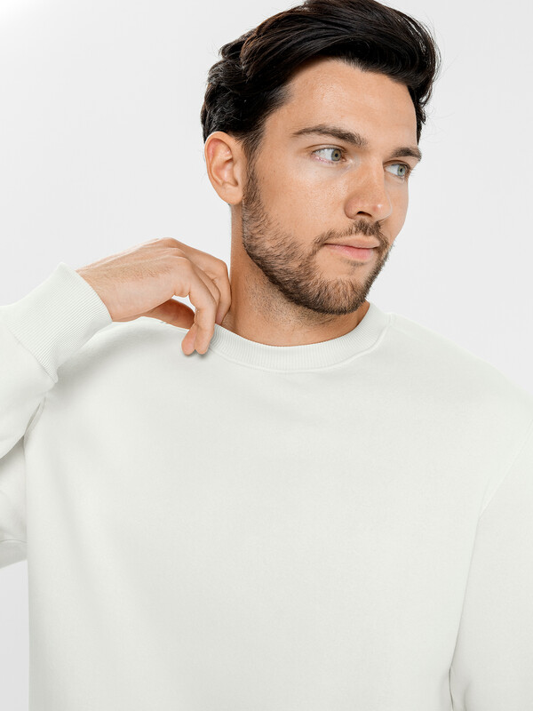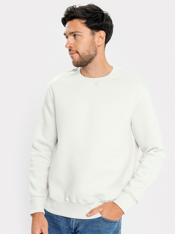 Джемпер из трикотажного футера с теплым подчесом. Длина до середины бедер, силуэт прямой. Линия плеча спущена. Рукава длинные, с притачными манжетами. Горловина круглой формы. Отличный выриант для стильных городских образов!
