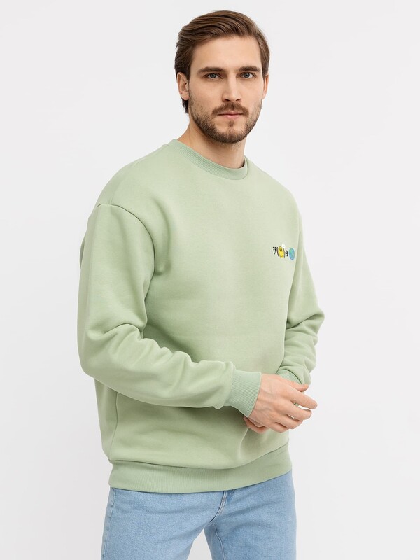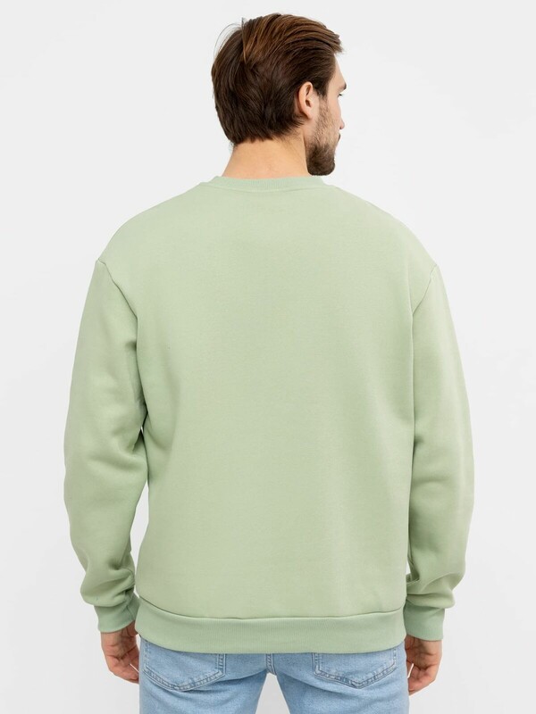 Теплый мужской свитшот из трикотажного футера с нежным подчесом. Силуэт прямой, вырез классический – круглый, не глубокий. Рукава длинные, на манжетах из рибаны. Спущенная линия плеча дарит свободу движений. Пояс, проходящий по нижнему срезу, также сделан из рибаны. Отличный свитшот для городских образов.