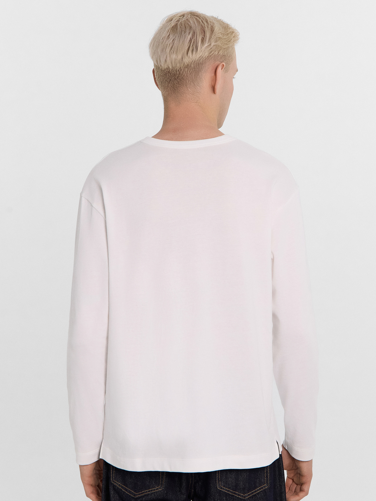 Линия плеча слегка спущена, рукава втачные длинные. По бокам джемпера разрезы.