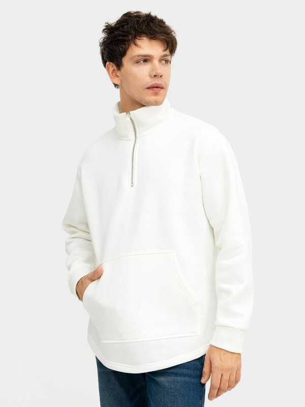 Рукава втачные длинные. Линия плача слегка спущена. По низу рукавов отрезные манжеты из основного полотна. По переду накладной карман кенгуру (ПО ЗАДАНИЮ)