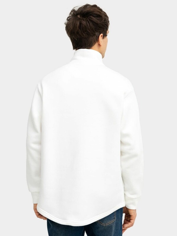 Горловина округлой формы с воротником стойкой из основного полотна. Шов втачивания горловины закрыт тесьмой хб.