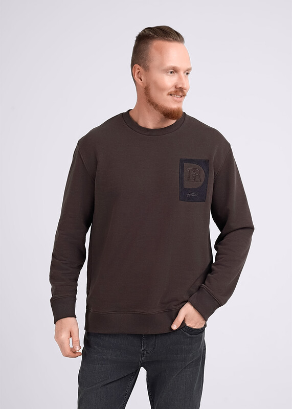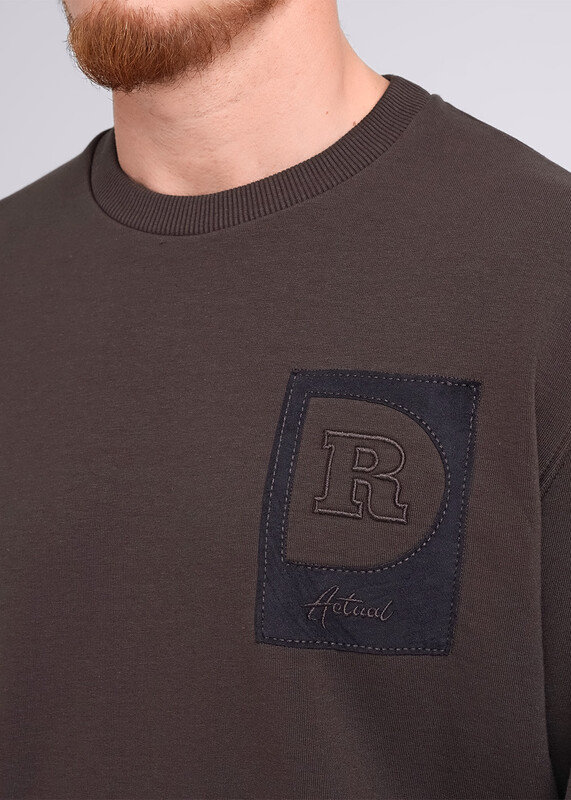 Мужской джемпер с круглым вырезом горловины со спущенным рукавом на манжете и поясе. Изделие выполнено из плотного футера. Модель дополнена дизайнерской аппликацией. Отличный вариант для повседневного образа со спортивным низом или джинсами.