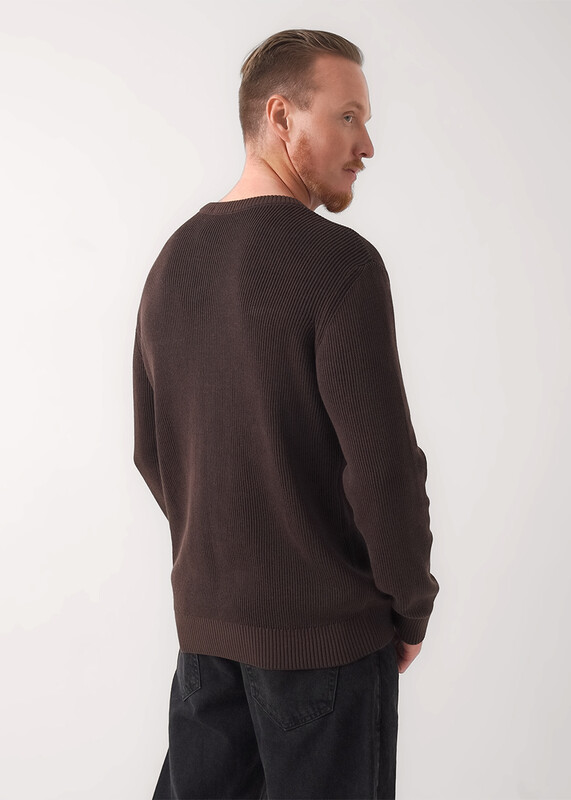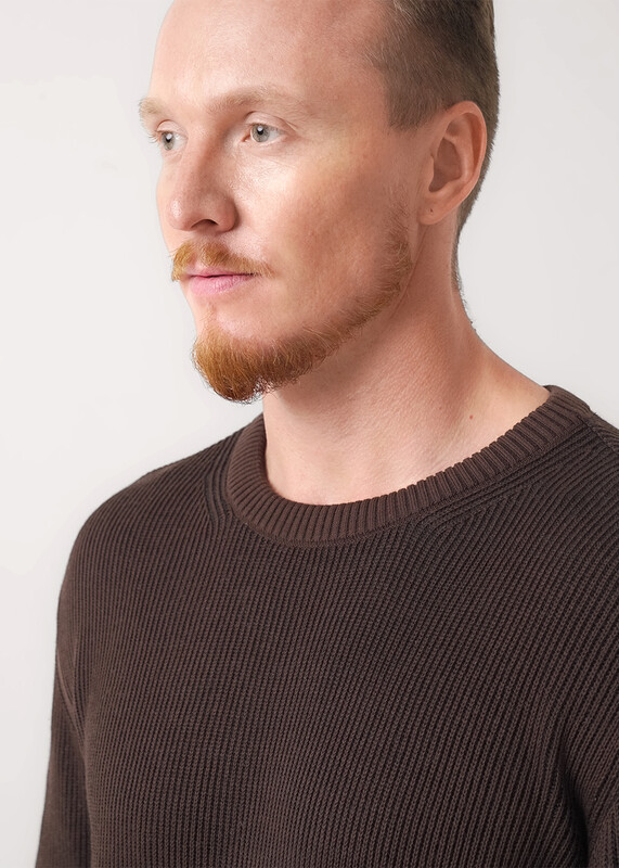 Джемпер мужской из хлопковой пряжи с длинным рукавом и круглой горловиной. Прекрасно сохраняет тепло, комфортный в носке, отличное решение на холодное время года. Комбинируется с джинсами или брюками.