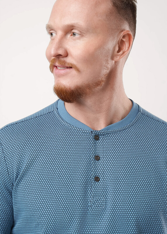 Джемпер из трикотажного фактурного полотна ""ячейка"". Изделие с удобной планкой на пуговицы и дополнено дизайнерским принтом. Данная модель отличное дополнение к брюкам или джинсам. Прекрасно подойдёт для встречи с друзьями.