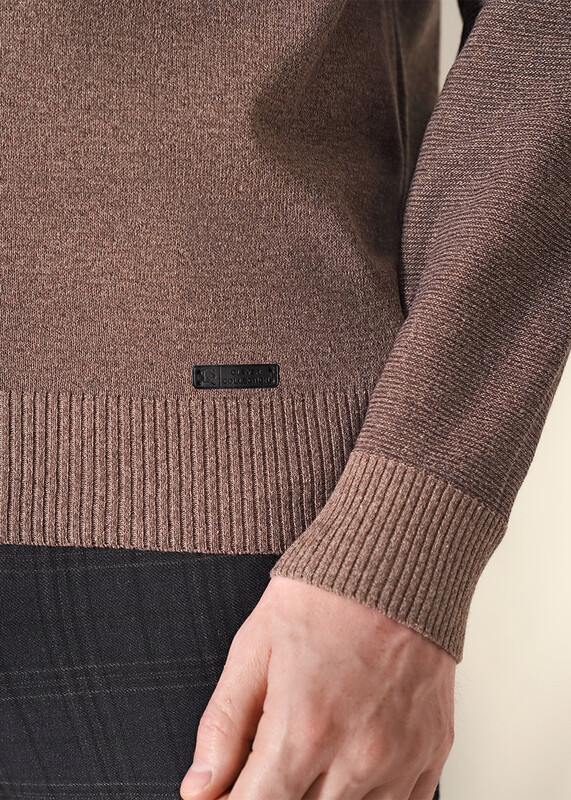 Джемпер мужской из смесовой хлопковой пряжи с длинным рукавом, планкой с иммитацией двойной горловины. Отличное решение на холодное время года. Данный джемпер можно комбинировать с брюками или джинсами. Прекрасно подойдёт для похода на работу.