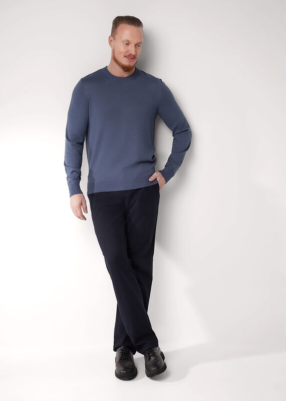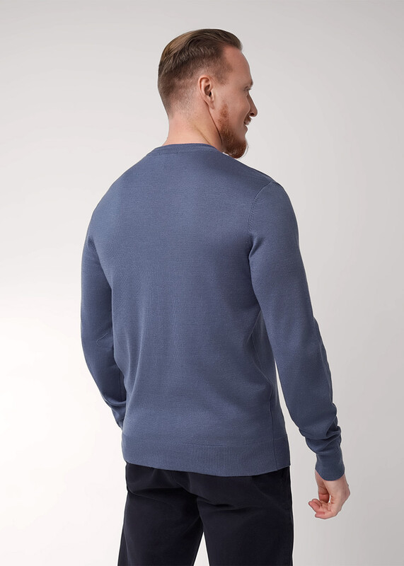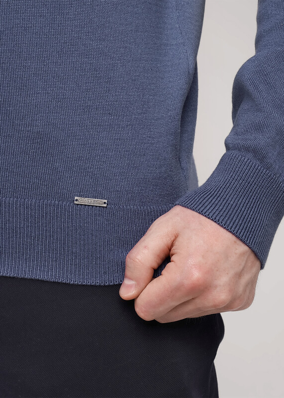 Классический вязаный джемпер с круглой горловиной. Изделие изготовлено из смесовой пряжи с содержанием хлопка. Данный джемпер удачно впишется в повседневный гардероб современного мужчины, привнося тепло, комфорт и элегантность одновременно.