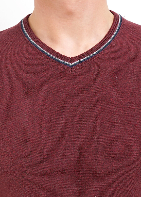 Джемпер прямого силуэта с ""V""-образным вырезом горловины. По бейке горловины полосы контрастного цвета. По спинке стильная обтачка контрастного цвета из поплина . Изделие выполнено из натуральной пряжи. Хорошо смотрится с джинсами или брюками.