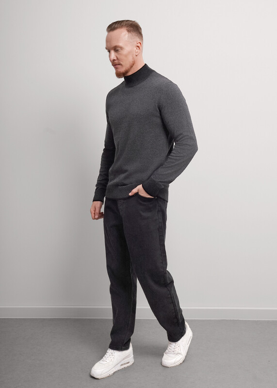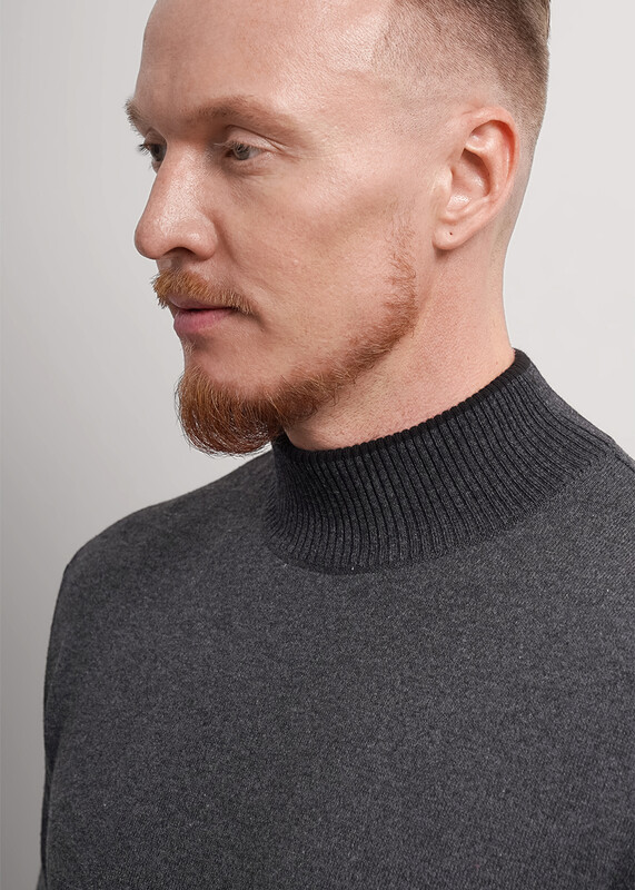 Джемпер мужской из смесовой хлопковой пряжи с длинным рукавом и воротником стойкой. Прекрасно сохраняет тепло, комфортный в носке, отличное решение на прохладное время года. Комбинируется с джинсами или брюками.