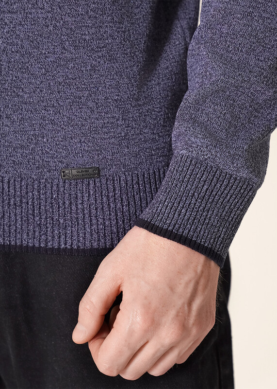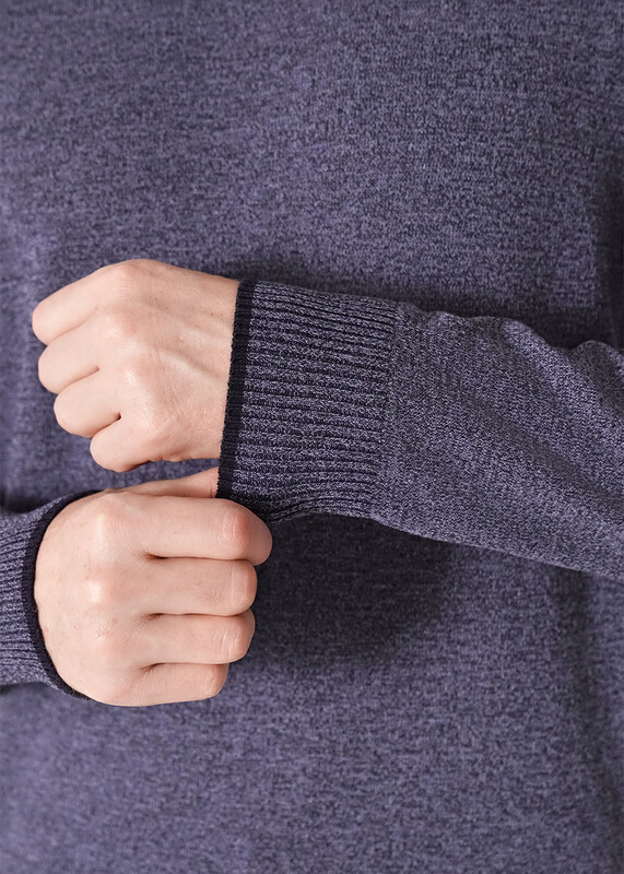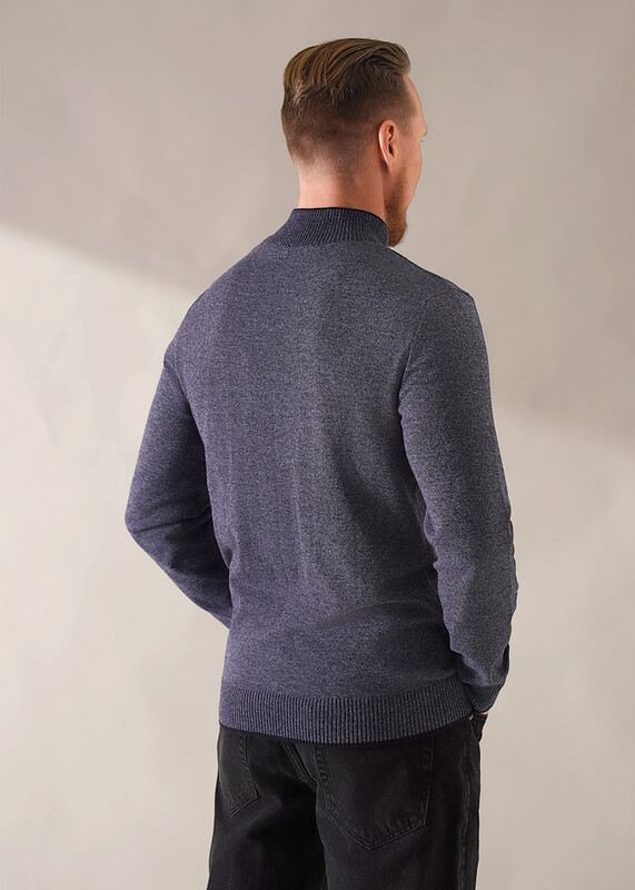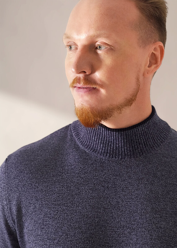 Джемпер мужской из смесовой хлопковой пряжи с длинным рукавом и воротником стойкой. Прекрасно сохраняет тепло, комфортный в носке, отличное решение на прохладное время года. Комбинируется с джинсами или брюками.